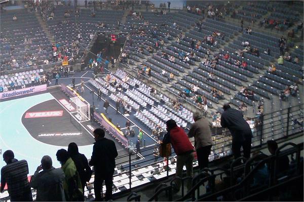 Vi sidder i sektion L1 i Jyske Bank Boxen til denne kampdag